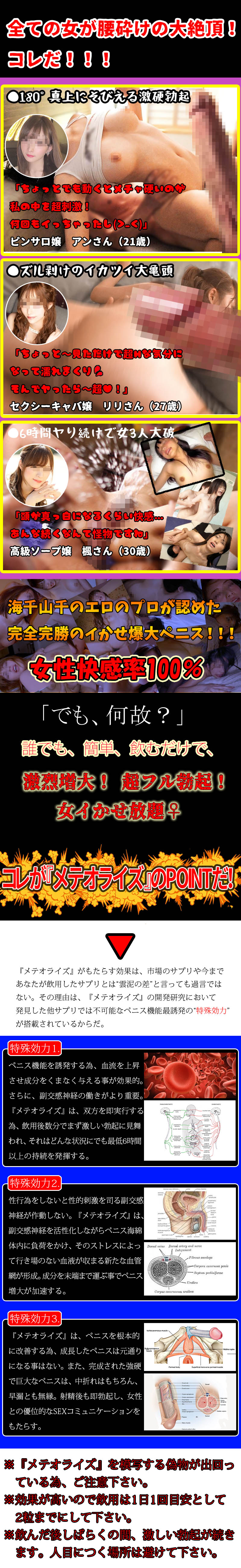 | 原材料名 | しじみエキス末(しじみエキス、タピオカデキストリン)(国内製造) べに花油, マムシ粉末, L-シトルリン, キダチアロエ末, 亜鉛含有酵母, カロペプタイド(乳糖、オットセイ骨格筋抽出物)(乳成分を含む), 燕の巣加工品(デキストリン、酵素処理燕窩), ガジュツ末, 西洋サンザシエキス末, フェヌグリーク種子抽出物, トンカットアリ末, 鹿角末, 馬ペニスエキス末 / セルロース, ステアリン酸カルシウム, 微粒酸化ケイ素, L-フェニルアラニン, L-アルギニン, フェルラ酸, |